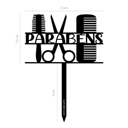Topper de acrílico com espessura de 3mm.