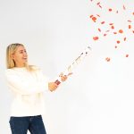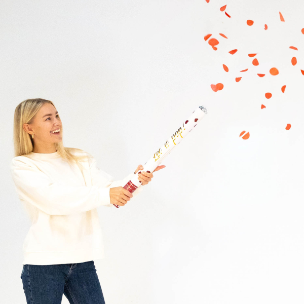 Canhão Confettis com pétalas de rosa vermelhas.