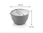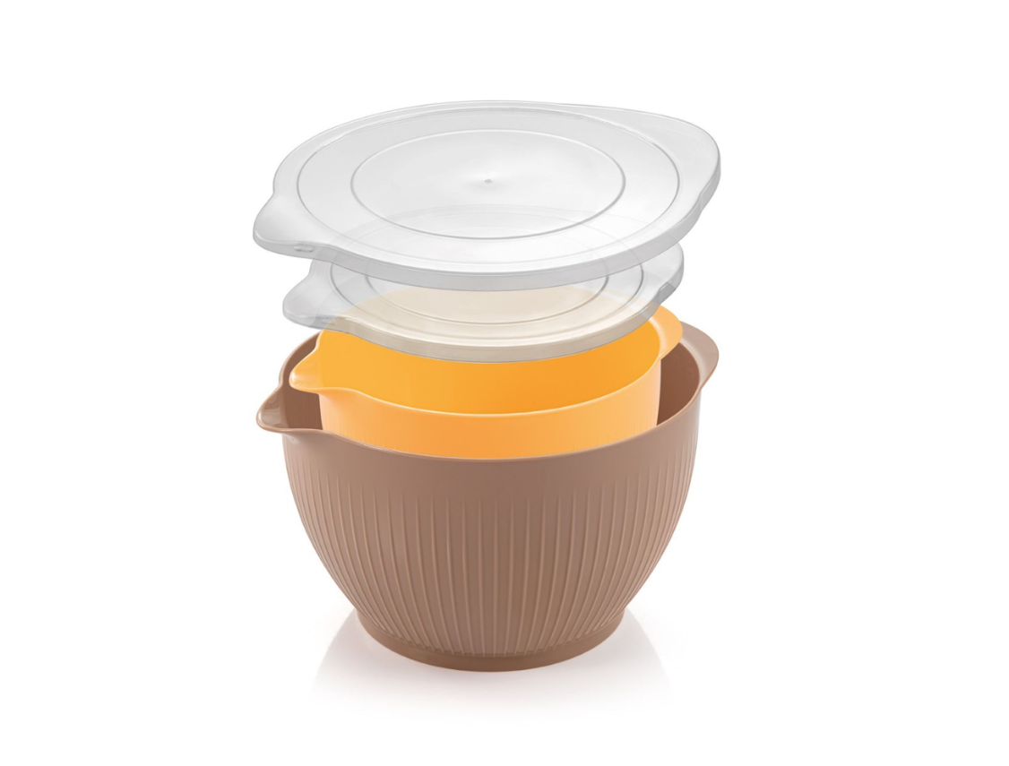 Este conjunto é composto por 2 taças de cozinha (3,4 l e 2,0 l), perfeitas para preparar e guardar alimentos de forma higiénica. Cada taça vem com uma tampa para evitar que os alimentos sequem e possuem um bico.