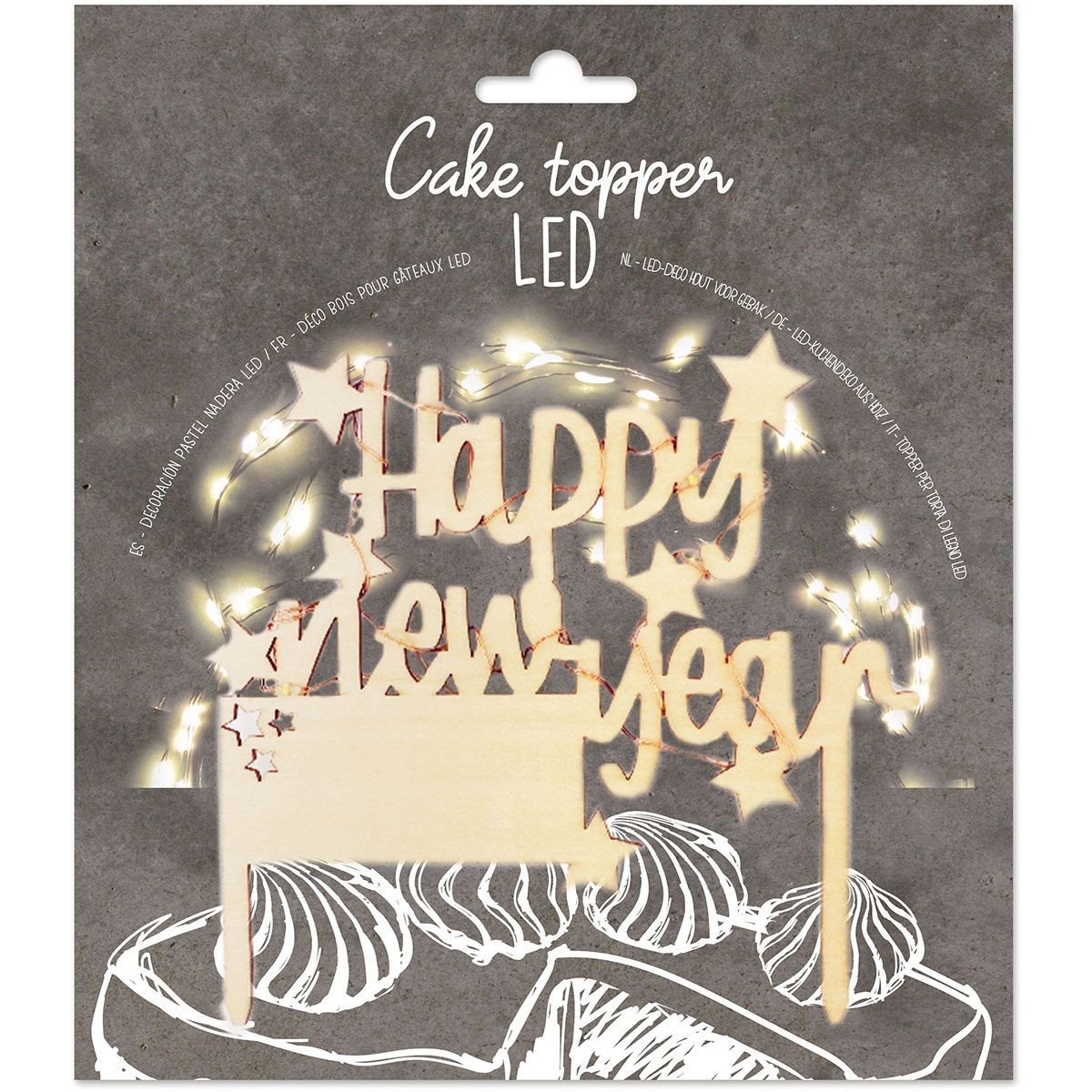 Adicione brilho aos seus bolos com este topo de bolo. Ele combina um design de madeira quente com uma delicada variedade de luzes LED.