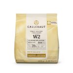 O chocolate branco da Callebaut contêm 28% de cacau e são feitos do melhor chocolate belga. As pastilhas são projetados para derreter e têm um sabor cremoso de leite equilibrado. Adequados para fazer bombons ou chocolate. Mas também é perfeitos para glacear cupcakes ou biscoitos.