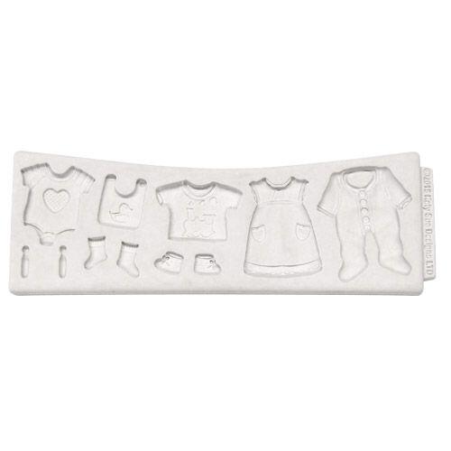 Molde com diferentes tipos de roupas e meias. Ótimo para decorar bolos ou cupcakes para um chá de bebê, entre outros.